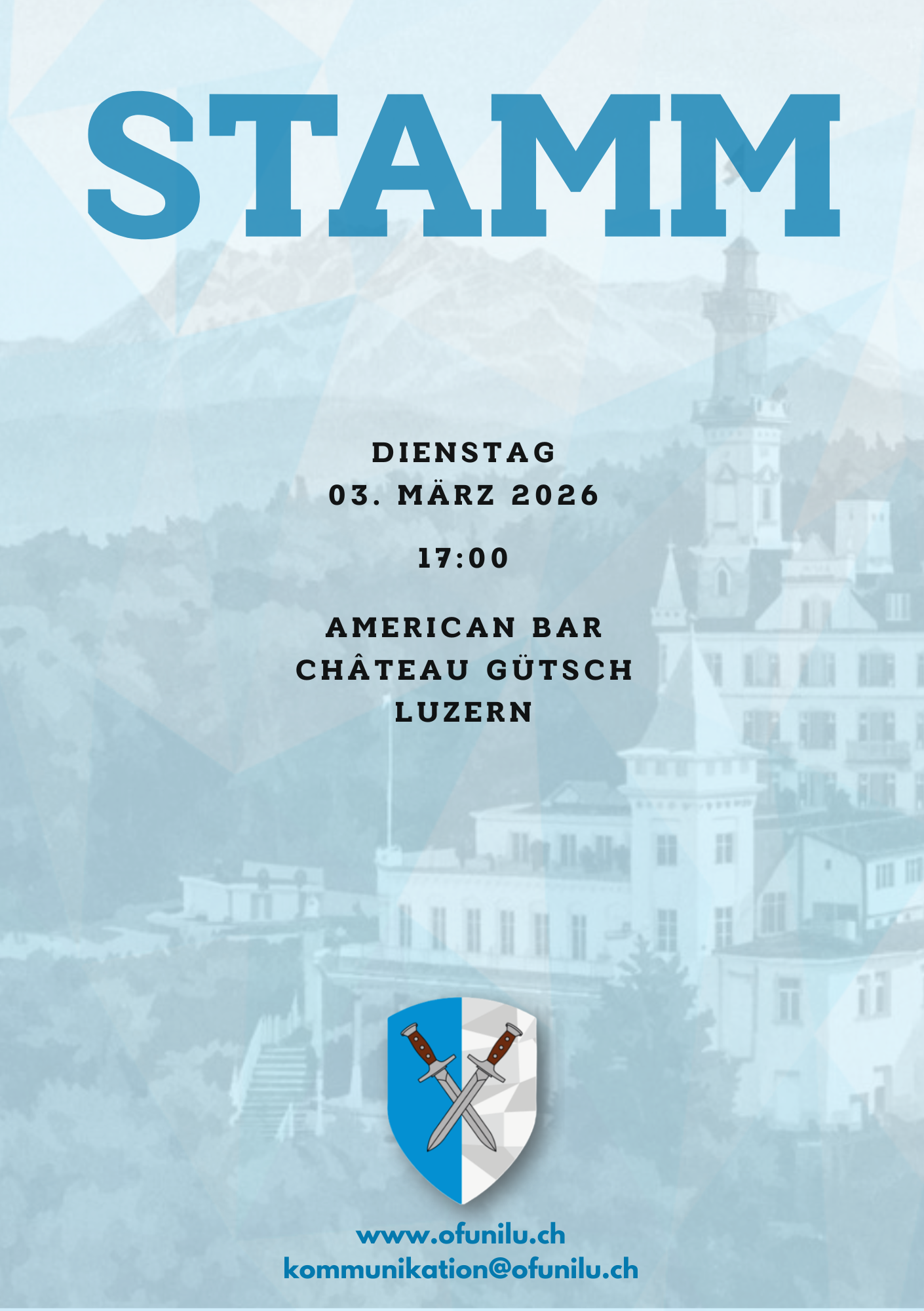 Liebe Vereinsmitglieder Zum Beginn des Frühlingssemesters laden wir Euch herzlich zu unserem Frühlingsstamm im traditionsreichen Château Gütsch ein. Die stilvolle American Bar bietet einen würdigen Rahmen für kameradschaftlichen Austausch, anregende Gespräche und einen gemeinsamen Auftakt in das neue Semester. Wir freuen uns auf einen gepflegten Abend in besonderer Atmosphäre und Weiterlesen